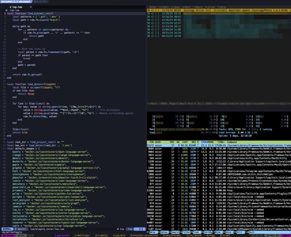 Porque los raritos que vivimos en un terminal también disfrutamos de nuestro #ViernesDeEscritorio. Sí, es #macos con #kitty y #tmux con varios panes (#nvim #mutt #htop).