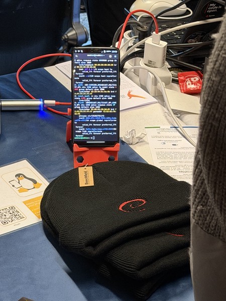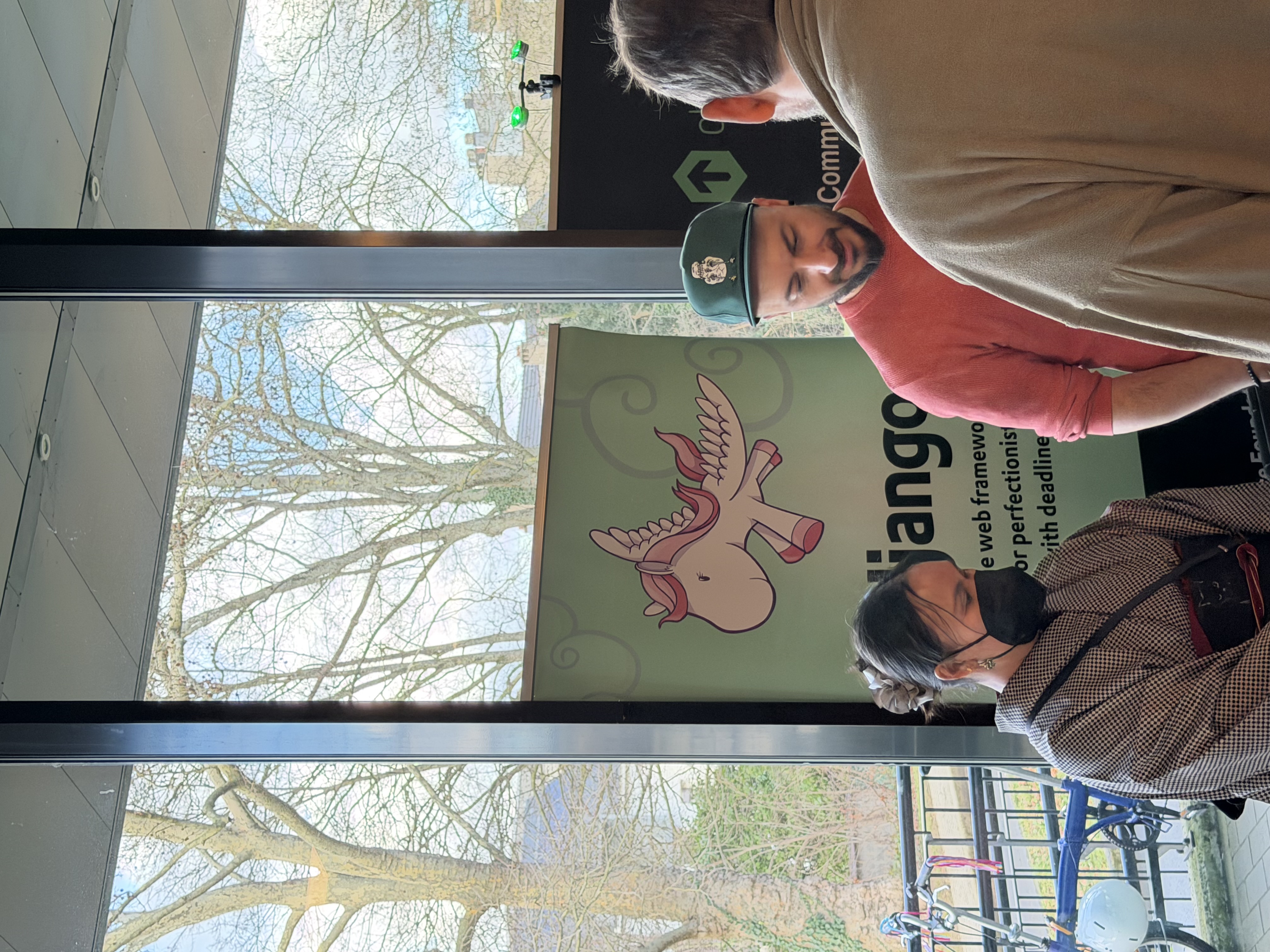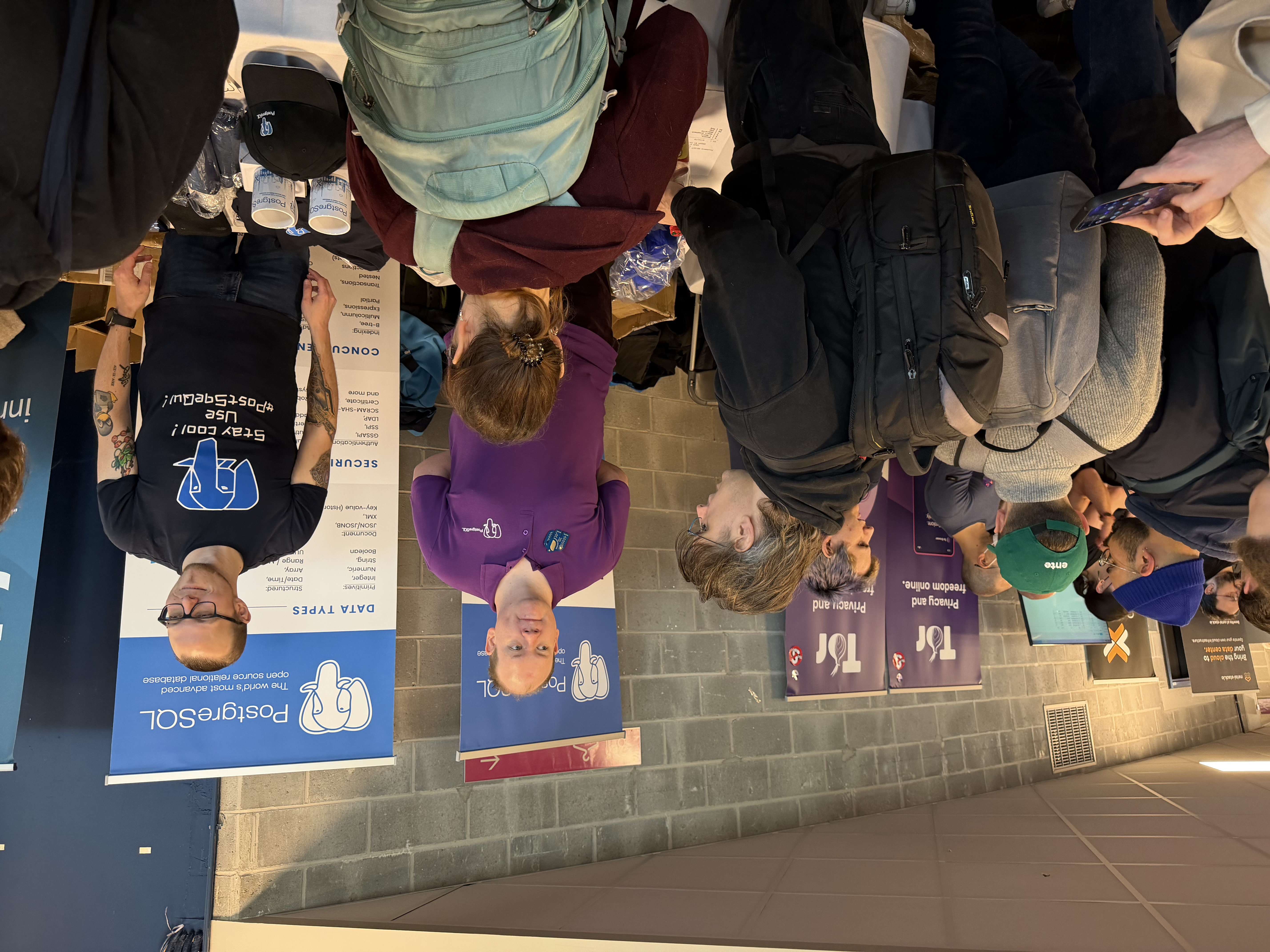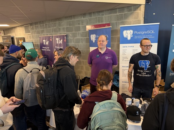 But what really hit me was entering the exhibition area. Python. Django. MySQL. Debian. PostgreSQL. Projects I’ve been using my entire professional life, right there, with their maintainers behind a table, willing to chat with you like it’s nothing.